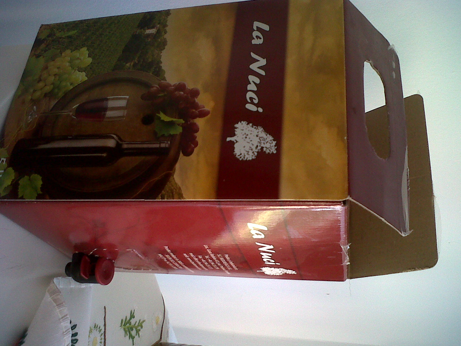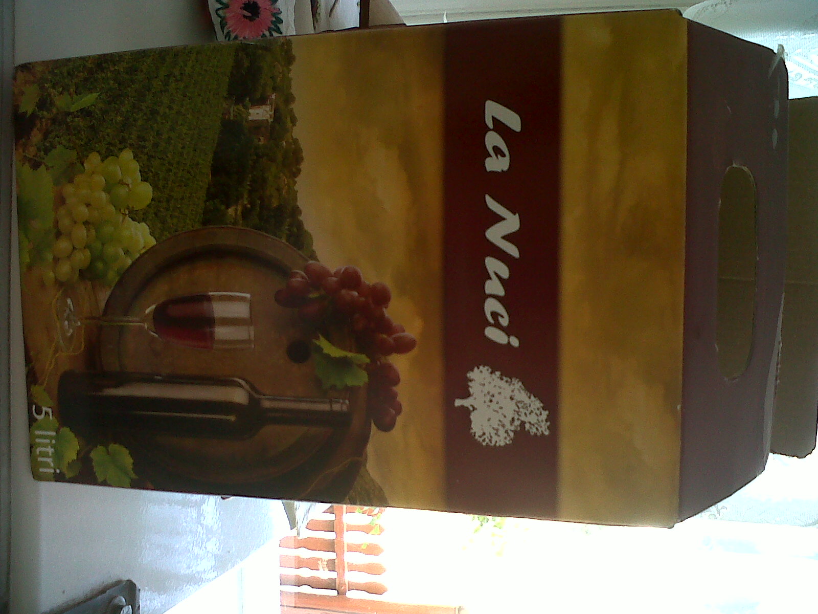 Am incercat vinul din gama „La Nuci” -produs de Cramele Budureasca- cu ocazia unei iesiri de weekend. Ambalajul avea doua marimi, la 3l si 5l. Vinurile disponibile au fost Merlot si Feteasca Neagra (la Crama Noastra -36 lei 5 litri). Am ales Feteasca Neagra 2008, demisec, 13.5% alcool, DOC Dealu Mare.