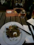 toate exprimarile sale (vanilie, fum, ghimbir, lemn ud), ajutat fiind de alcoolul care strabate destul de pregnant (are de unde, cu 14.5%). Gustativ, se exprima intr-o paleta omogena, cu gem de prune, ciocolata amara, si note ascutite de telina. Ce impresioneaza sunt taninii omogeni, care lasa un gura o senzatie matasoasa, care imbraca mai mult decat dizolva celelalte gusturi. Un vin care cred ca se exprima cel mai bine culinar, in compania unui preparat pe masura (eu il vad alaturi de miel!), insa in seara asta m-am bucurat de el in loc de desert.