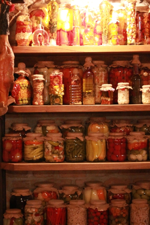 O pivnita dosita, impanata cu borcane, putini, strachini si ulcele, sticle, damigene si alte recipiente, incanta oaspetele cu sunci afumate atarnate-n cui, siraguri de ceapa impletita, randuri de sticle de vin, si o masa de lemn masiv care sa le duca pe toate.