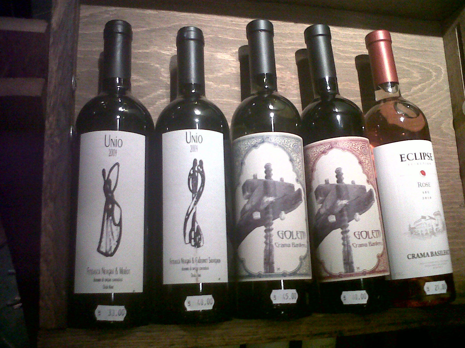 Rose 2010, Eclipse: vinificat in stil provensal -culoare eleganta si fina, somon, sirop de brad, limpede si cristalina. Nas usor, citric si inviorator, corp sustinut de o aciditate buna, cu note de pomelo, mere de vara; final mediu si acrisor. Buna ca opening drink, dar si alaturi de un fel principal care necesita ceva acrisor.