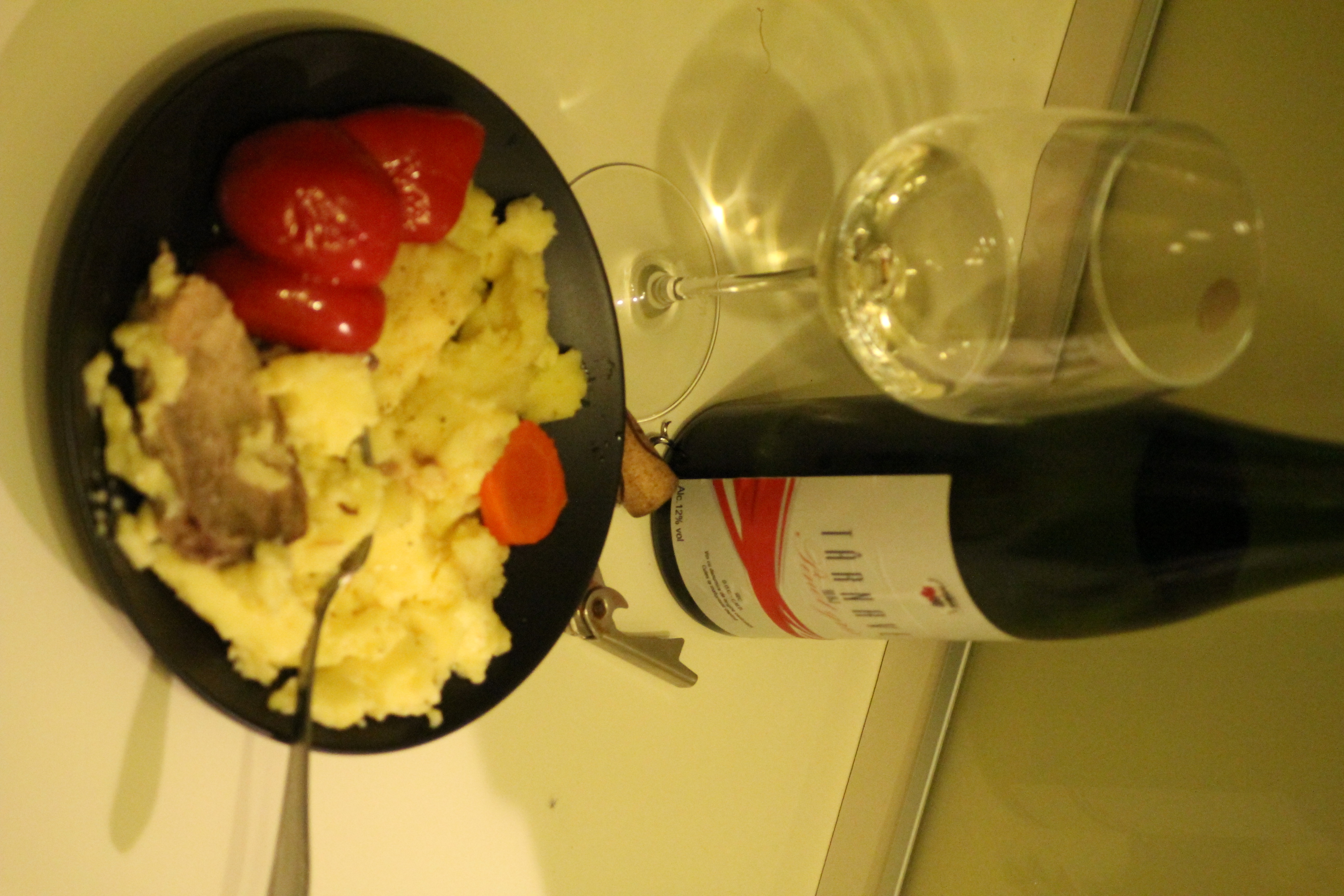 Daca intr-adevar vinul e din 2000 (asa cum criptic pretinde eticheta), are o forma buna, fiindu-i iertate defectele -probabil de pastrare. In mare nu are nimic iesit din comun, respectiv este echilibrat si discret, cu exceptia defectului metalic, coclit -il trage in jos de la 3 la 2 dopuri. Nu e rau, e chiar interesant, dar fiecare luna va mai accentua varsta si defectul. E salvat in cazul de fata de pastravul de Tarnita, inabusit cu lamaie …regele pestilor de apa dulce!