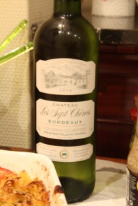 Seara s-a incheiat foarte casnic, cu o caserola fierbinte si un vin alb -Chateau Sept Chenes, Bordeaux 2010. Nu mai stiu cum a fost, doar ca am reusit sa stau treaz pana l-am terminat.