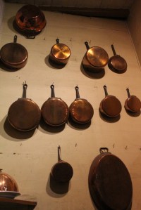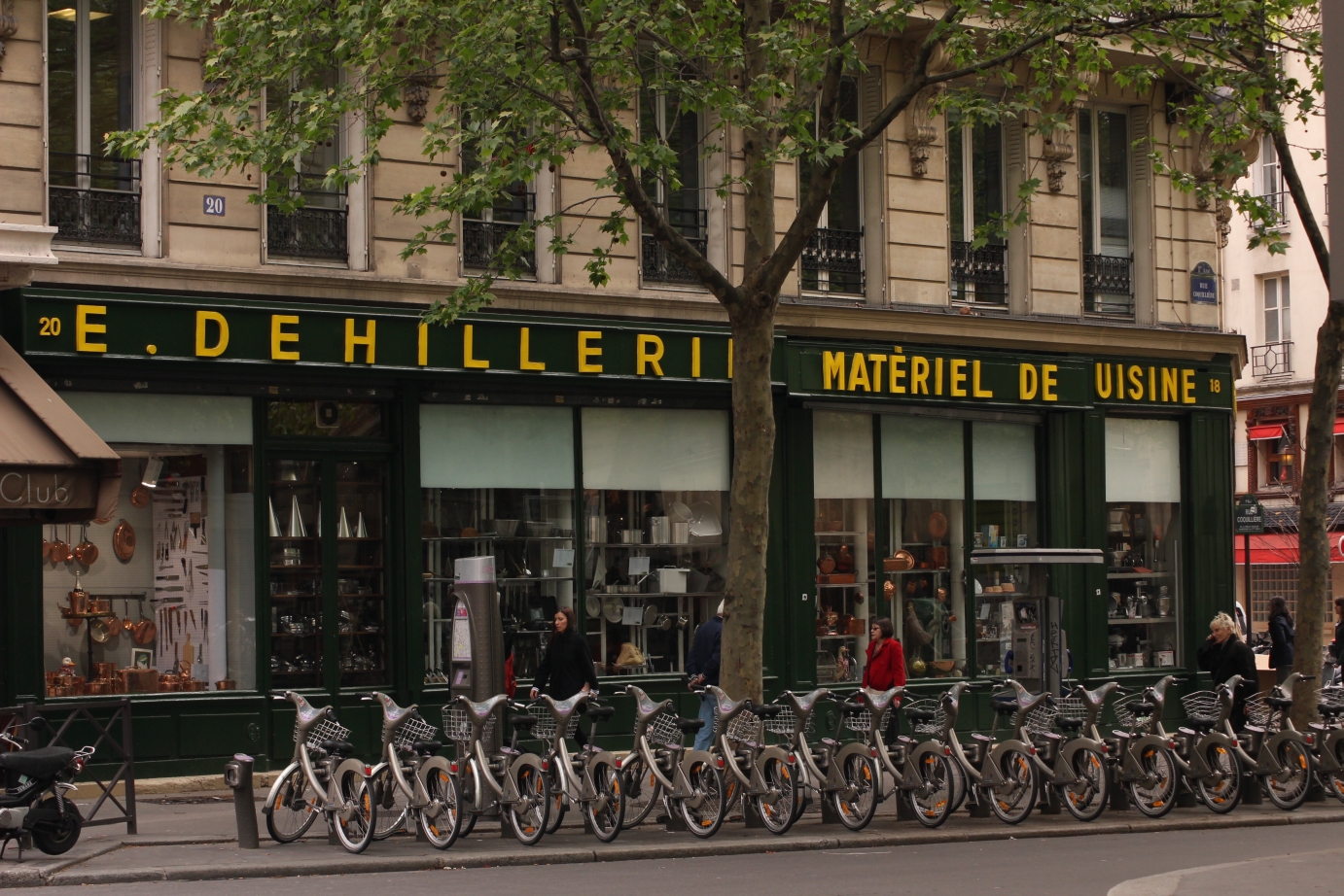 M-am gandit sa abordez gastronomia franceza de acolo de unde incepe -nu de la gali si romani- ci din bucatarie, adica din spatiul dedicat pregatirii hranei. Inventand practic arta culinara clasica, francezii au inventat si perfectat de-a lungul secolelor si o mare parte din instrumentele folosite astazi, de la gospodina care incropeste o cina repezita si pana la respectabilul chef cu boneta scrobita. Si exact asta am intalnit in magazinul lui Eugene Dehillerin, gospodine si bucatari laolata, rascolind, incercand, discutand si cumpanind indelung nehotarati, cerand sfaturi si plecand cu bratul plin. Cu ce? pai cu tot ceea ce s-ar putea inventa oarecum util intr-o bucatarie: cutite (evident!), tigai, caserole, oale, cratiti, forme de prajituri, rasnite si razatori, inoxuri si alamuri, site si cosuri, linguri si polonice, ibrice si alambice; unele gingase si fragile ca niste bijuterii, pana la altele care ar putea fi puse pe roti si inmatriculate in circulatie. Dupa un tur rapid pana la etajele inferioare m-am oprit -lipsit de imaginatie- tot la cutite. Dealtfel, oricine trece pe acolo pune mana si incearca: cutitul-sabie de 30 cm, ghilotina, lama cu doua manere de taiat roti de branza, etc.