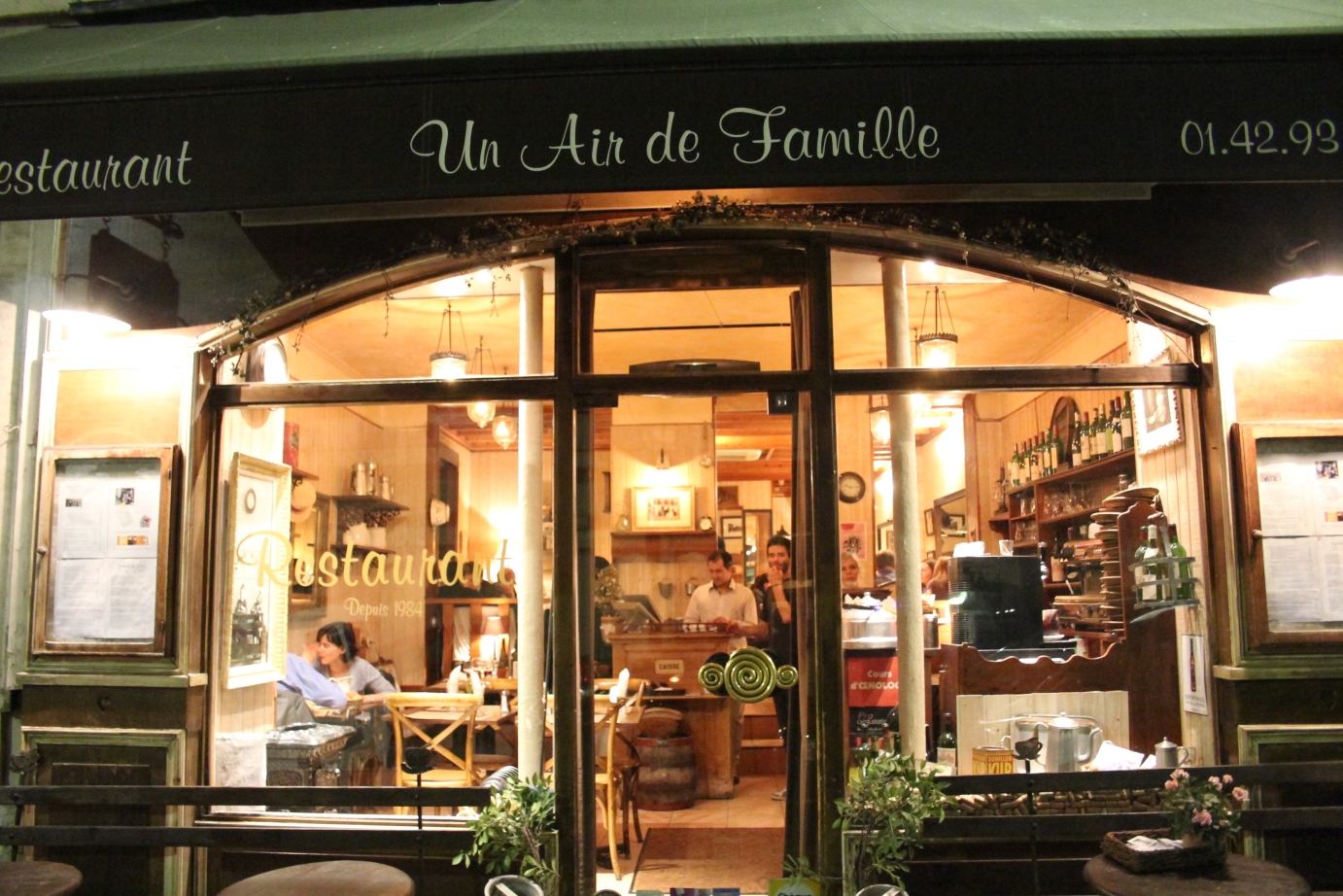 A doua parte a rendez-vous-ului cu gastronomia franceza a fost la un mic restaurant de cartier, purtand un nume inspirat -„Un air de famille„. Discret, cochet si imbietor, ne-a intampinat cu un aer degajat si cordial. Pe la ora 8 am fost primii clienti la cina, dar s-a umplu repede, cei mai multi clienti fiind obisnuiti ai localului. Meniul construit dupa tipicul frantuzesc -trei-patru feluri „permanente”, si apoi specialitatile saptamanii; o „formulle de dinner” oferea un pret special la o cina completa, cu aperitiv, fel principal si desert. Bucataria a fost din nordul Frantei, iar vinurile de pe Valea Loarei; totusi am vazut unele influente nord-africane in unele aperitive si deserturi. Am remarcat (si gustat): aperitiv de Camembert copt cu migdale, rasol de vita in sos de morcovi si vin rosu, si pannacotta cu sirop de zmeura la desert, stropite cu un Anjou din 2008 (Cabernet Sauvignon si Cabernet Franc), rustic si intepator. De apreciat: comanda gresita pentru aperitiv ne-au lasat-o pe masa „pour degustation„, din partea casei…