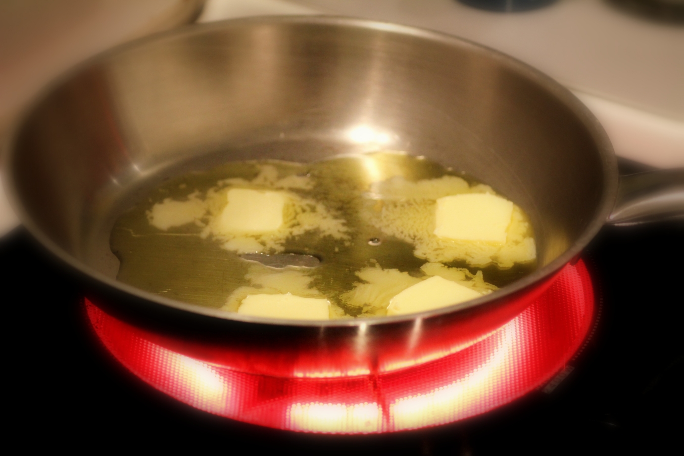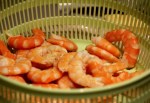 Crustaceii au aterizat intr-o strecuratoare in chiuveta, pentru ultima lor intalnire cu apa. Curatati frumos de antene si alte membre si dezbracati de armura rozalie ca o unghie de domnisoara, s-au balacit scurt in apa rece si apoi s-au zvantat pe marginea bufetului. Intre timp, tigaia s-a umplut de balti bolborosinde de unt topit (President, ca sa fie in ton cu alegerile!) -din ochi cam 2-3 cuburi, si un peu de ulei de masline.