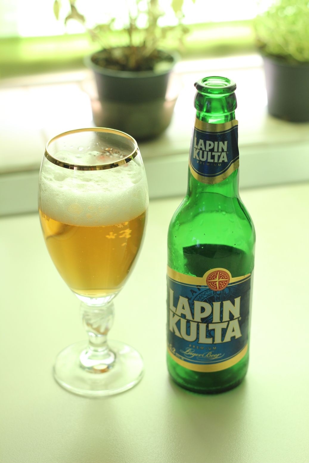 Mi-am amintit de toate acestea vazand in fuga, pe rafturile unui supermarket, o eticheta familiara (nu, nu e de vin): Lapin Kulta, berea finlandezilor. E o bere comuna, un fel Bergenbier din Finlanda, produsa in provincia Lappland (da, cea cu reni, mii de lacuri, aurore boreale, si legende cu troli). Are 5.5% alcool, o culoare galbena intensa, de pai uscat de grau. Gustul e dulceag-acrisor, are o oarecare greutate data de notele de paine uscata si coaja de cartof, cu un final putin amarui si intepator.