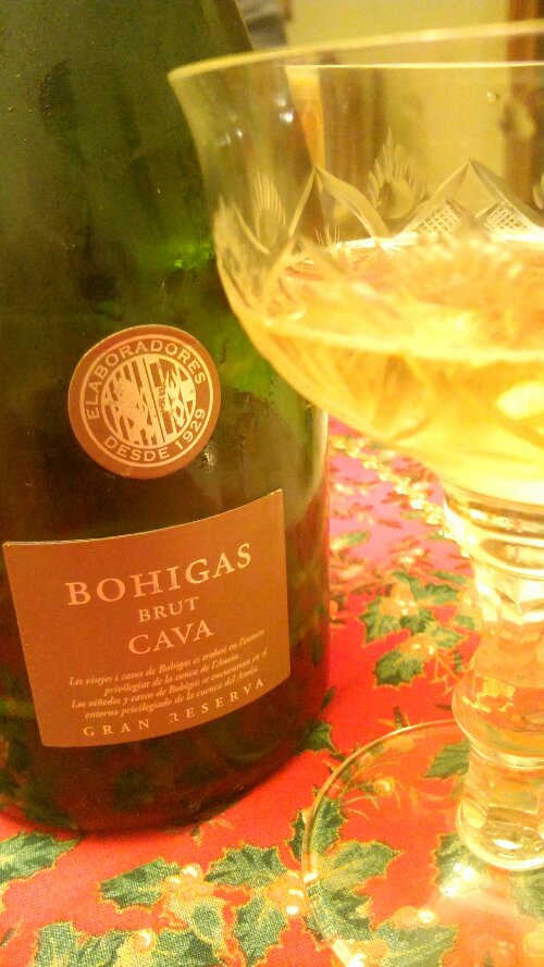 Dincolo de aparente, a fost o mancare cu adevarat sarbatoreasca , delicioasa pana la coate, care a cerut un vin pe masura. Impreunarea culinara a fost destul de inedita -o Cava Brut Gran Reserva de la Bohigas. In traducere, asta inseamna un vin spaniol spumant din regiunea Penedes (in apropiere de Barcelona) rezultat din cele trei soiuri traditionale pentru aceasta bautura –Macabeo, Parellada si Xarell.Lo, cu un mic adaos de Chardonnay (permis de reglementari). A fost o adevarata intrecere in gura care sa fie mai fina, frageda si aromata. Spumantul a tinut perfect piept …pieptului de curcan, aducand exact doza de aciditate si mineralitate necesara pentru a da aripi unei pasari altfel greoaie. Aromatic, citricele si fisticul au primul cuvant, in final venind si ceva migdale amare si pesmeti. Greseala mea a fost sa-l servesc mult prea rece, astfel ca abia dupa terminarea acestui fel de mancare a inceput sa-si arate toate aromele. Perlatie fina si destul de abundenta, culoare palida-verzuie, s-a potrivit si la un desert usor cu prajituri de casa.