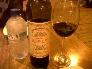 Seara m-a prins cu o briza placuta la 15 grade, pe o promenada cu palmieri si taverne, o masa copioasa si o sticla de vin cipriot aspru: Ayios Elias 2009, vin rosu sec, cupaj din trei soiuri locale (Mavro, Maratheftiko si Ofthalmo), produs dupa o reteta traditionala la manastirea Chryssoroyatissa din
