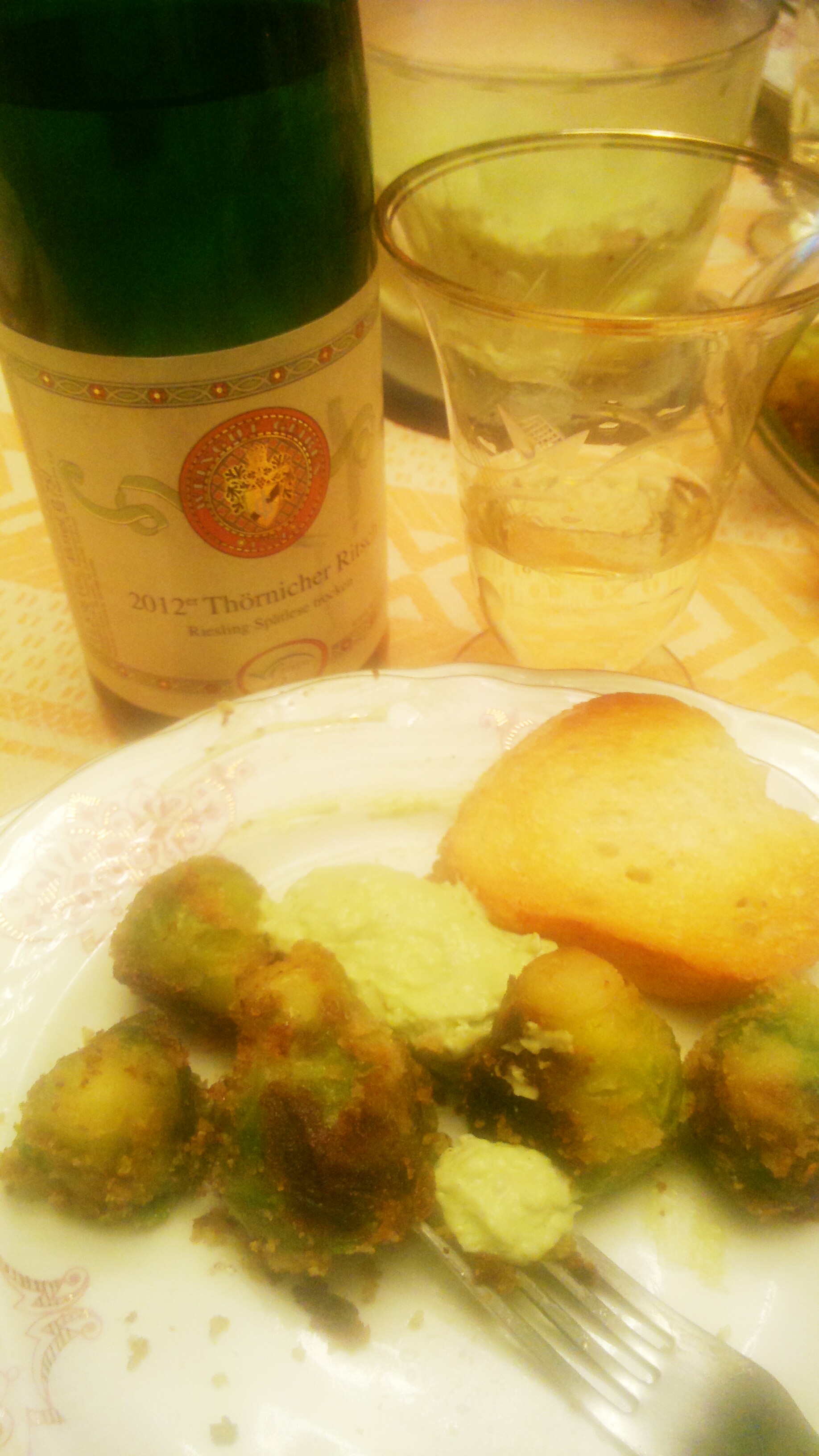 Numita mama a contribuit la succesul reuniunii printr-un preparat cu varza de Bruxelles, inabusita indelung, apoi calita in unt, si intr-un final dichisita cu niste pesmet, si alaturara unui sos cu marar. Alaturi de paine prajita, bineinteles.