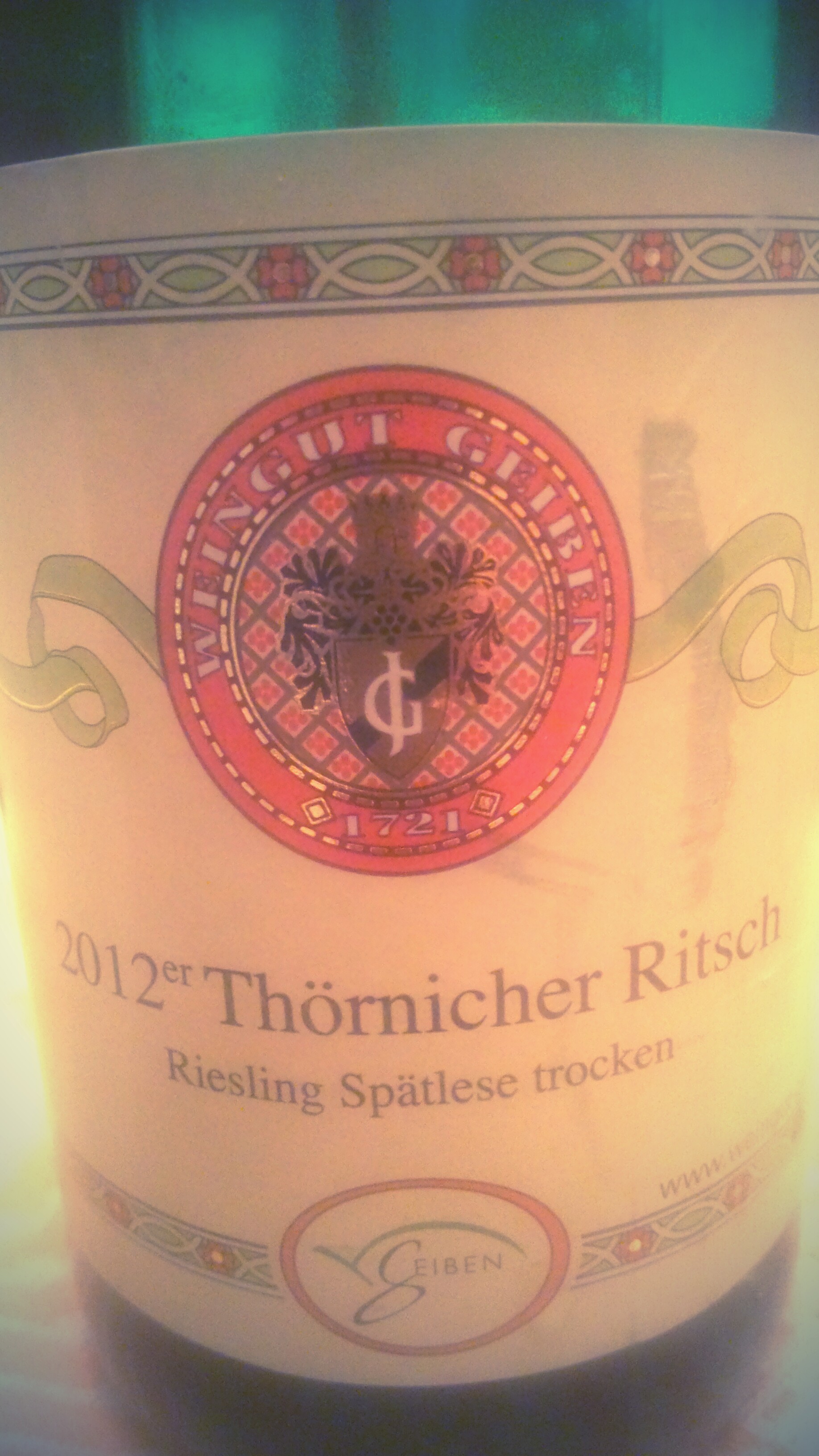 Umila mea contributie a fost alegerea -inspirata! a unui vin pe masura: un Riesling de pe Mosel, de la Weingut Geiben, 2012, trocken sie bitte, Thornicher Ritsch. Aspru si taios, dar flexibil ca o lama Solingen, mineralitatea ascunsa sub niste fructe cam verzi, de consistenta medie, si cu un final citric, numai bun sa faca fata sosului de marar.