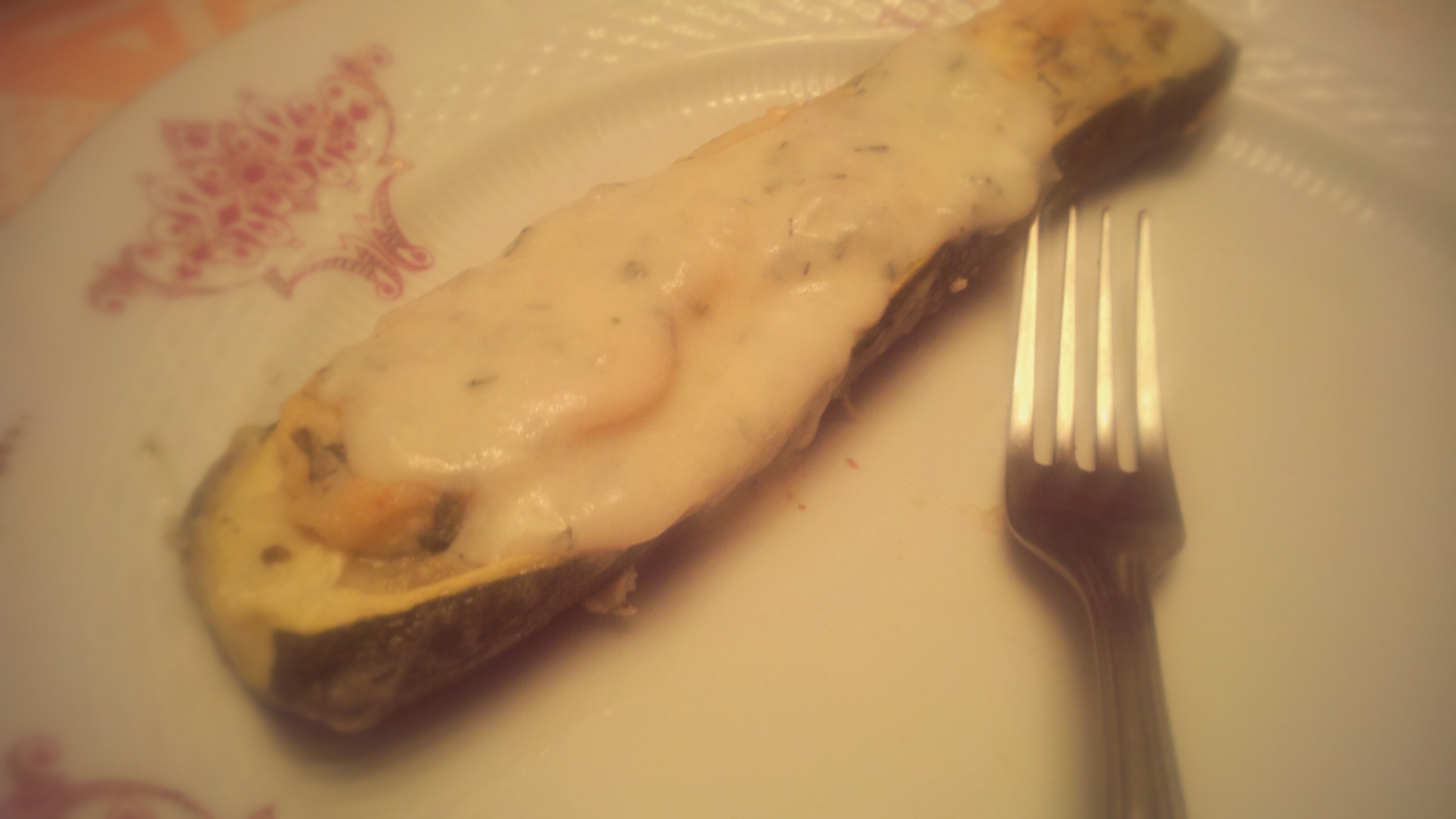 Ziceti ca nu suna rau? Pai sa vedeti atunci cum au fost dovleceii tineri, copti cu o pasta de branza dulce-sarata, cu smantana si marar din belsug. Sa tot vii pe-acasa, nu?
