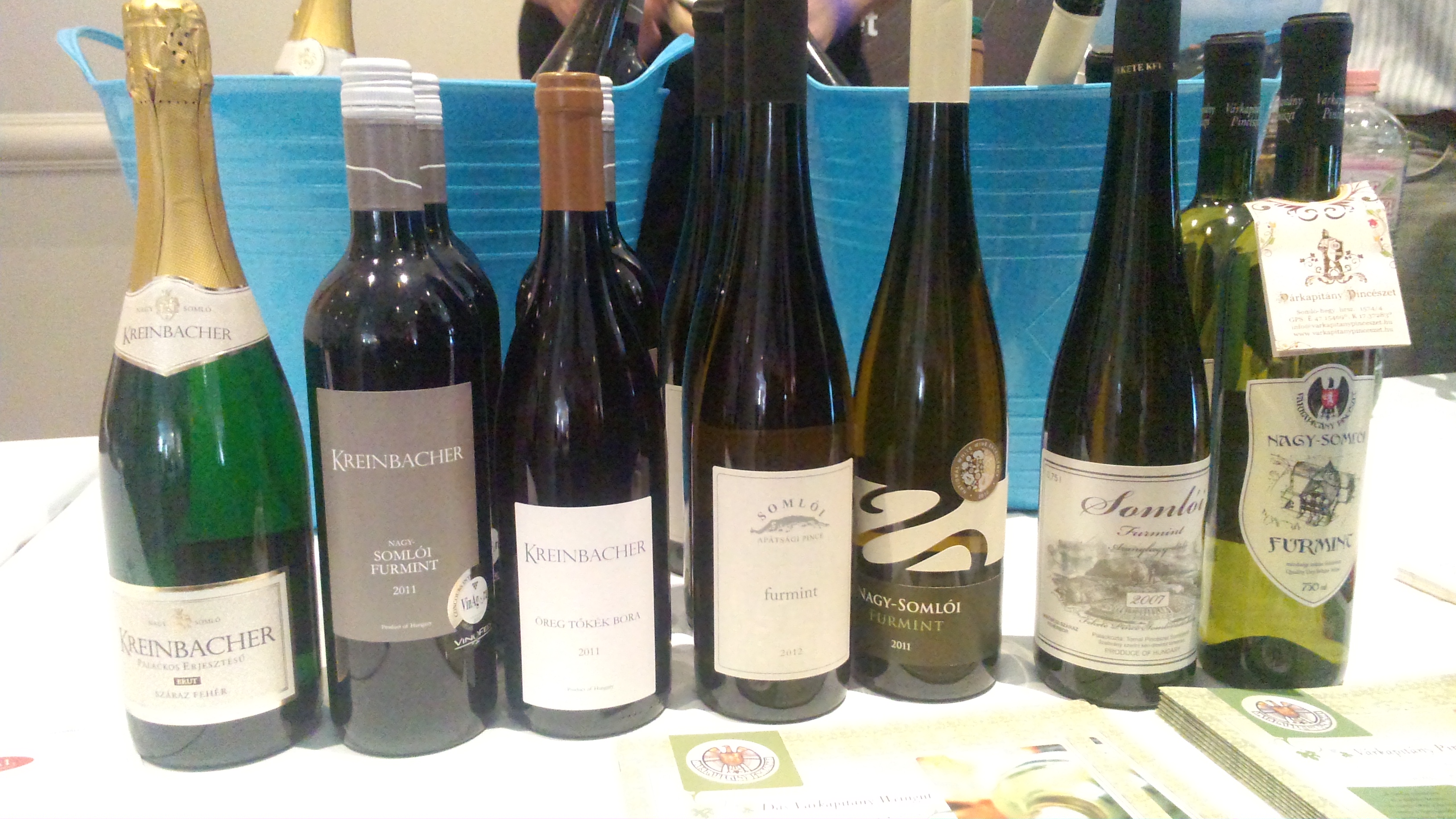 Am remarcat in primul rand standul producatorilor din regiunea Somlo, organizat exemplar dupa parerea mea: stand comun, reunind tot producatorii din regiune, multi dintre ei fiind in spatele mesei, servind vinuri si informatii. Pana aici nimic neobisnuit, cu exceptia faptului ca vinurile nu erau grupate pe crame, ci pe soiuri, astfel ca aveam posibilitatea sa degust diferitele exprimari ale unui soi, in functie de producator si locatie geografica. Si indiferent cine servea, era la fel de bucuros sa ofere informatii despre oricare dintre viunuri. O lectie interesanta, pe care o vad foarte usor de pus in aplicare la noi, in special in regiunile cu multi producatori de talie medie -Dragasani bineinteles, dar si Aiud, Dealu Mare…