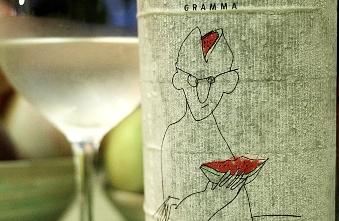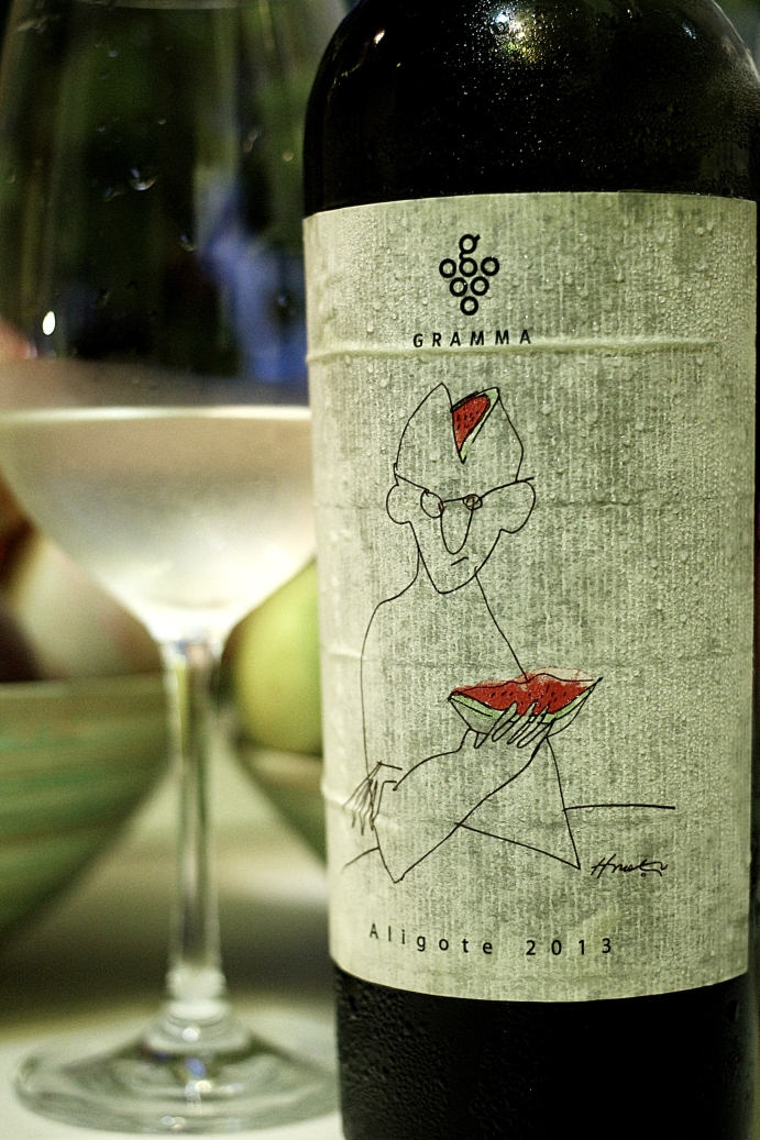 Si daca vorbim de contururi subtiri, de siluete goale, si de ironie fina, ce eticheta putea fi mai potrivita decat caricatura semnata Horatiu Malaele, si ce vin putea fi mai potrivit decat un Aligote 2013 de la Gramma.