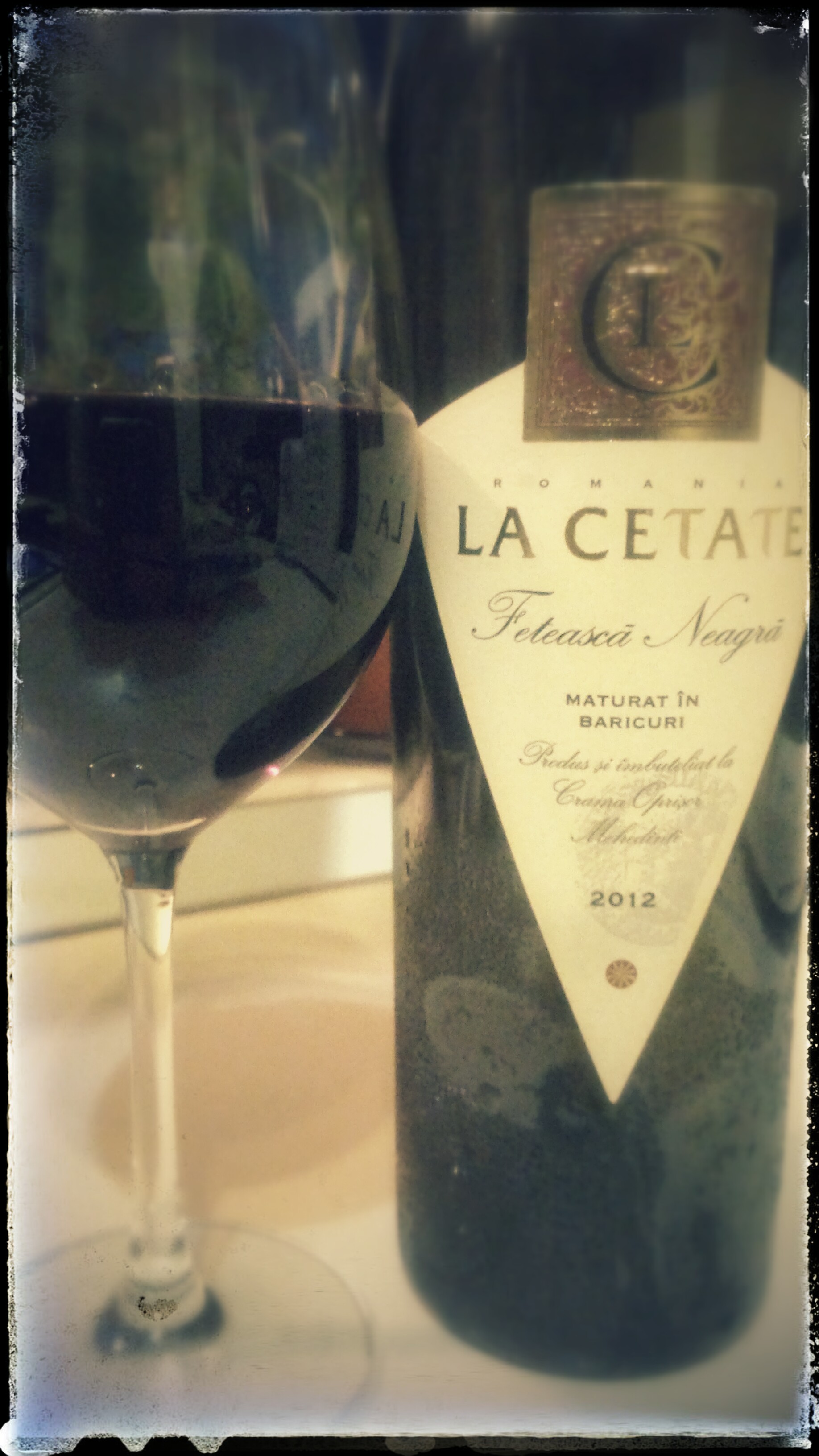Reintors, cu capul plin de imagini cu fortificatii, bastioane, ravelinuri, poduri si garzi inarmate, mi-a sarit in ochi inscriptia de pe eticheta sticlei, si conexiunea mentala a fost facuta cu Feteasca Neagra 2012, La Cetate, Crama Oprisor. Veti spune ca e un vin care cu greu isi gaseste locul in serile toride de vara, si nu va contrazic, doar ca aduc in completare doua aspecte: la noi la Cluj „torid” inseamna 27-28 de grade -relativ suportabil adica, iar al doilea aspect este ca …pofta bate caldura!