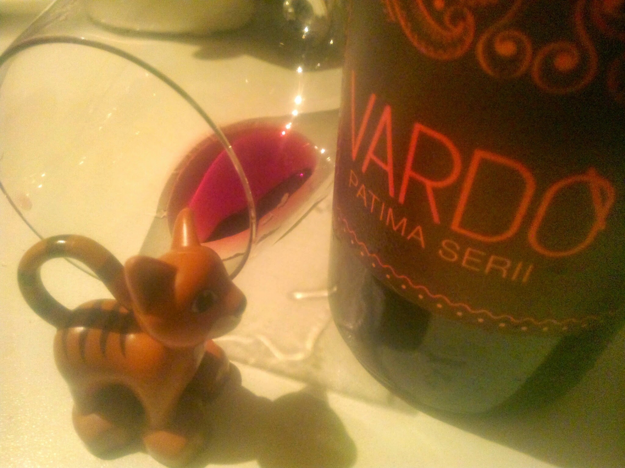Vardo, Feteasca Neagra 2011, Domeniile Segarcea. Daca anii trecuti era moda cu Fetesti Negre vinificate intr-un stil mai aspru, cu mult tanin, aciditate inalta si astringenta, ma bucur ca „moda” a inceput sa vireze spre Fetesti Negre mai domoale, mai „feminine” si fluide, si cred ca acest stil se potrivste mai bine soiului. Vinul se remarca prin aromele calde, cu mult fruct copt, chiar confiat, scortisoara, cafea cu lapte, dand impresia unui pannetone cald. Corp moale, fluid, cu aciditate joasa, tanini insesizabili, arome catifelate si invaluitoare, si un final ce aduce a gem de macese. E o Feteasca NEagra agreabila, neinvaziva, care nu agreseaza papilele si lasa loc preparatului sa fie in prim-plan. Si vorbind de preparat, vinul acesta merge cu aperitive cremoase, gem salata de boeuf, conopida cu maioneza, ori salata de oua umplute.