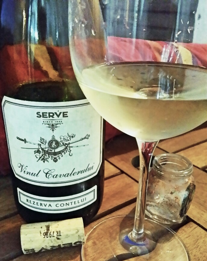 Acasa, se deschide sticla de Rezerva Contelui, alb 2015, de la SERVE, rece-polar. Se bea pe nerasuflate un pahar.
