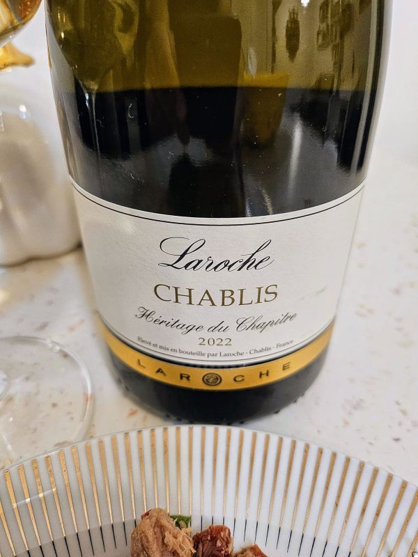 Pe lângă aciditate și mineralitate, să nu uităm că farmecul Chablis-ului vine tocmai din rotunjimea și finețea Chardonnay-ului, cum numai acest strugure poate să îmbine: note de corcodușe târzii, dude albe, dar și ceva ananas, ceai verde, și un final învăluitor, ce compensează foarte bine amăreala măslinelor și savoarea peștelui.