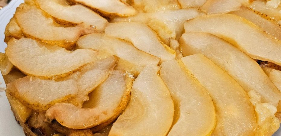 Se iau vreo șase pere medii, din cele semitari, care se înmoaie ușor dar își păstrează fermitatea. Cred că popular le zice ”pere popești” sau ”untoase”, iar francezii le zic ”Cure”. Se spală, taie jumătăți, se scot sâmburii și părțile tari din mijloc. Se taie cu grijă să nu se zdrobească, în felii cam de 1-1.5 mm grosime. Sau cam cât lama cuțitului.