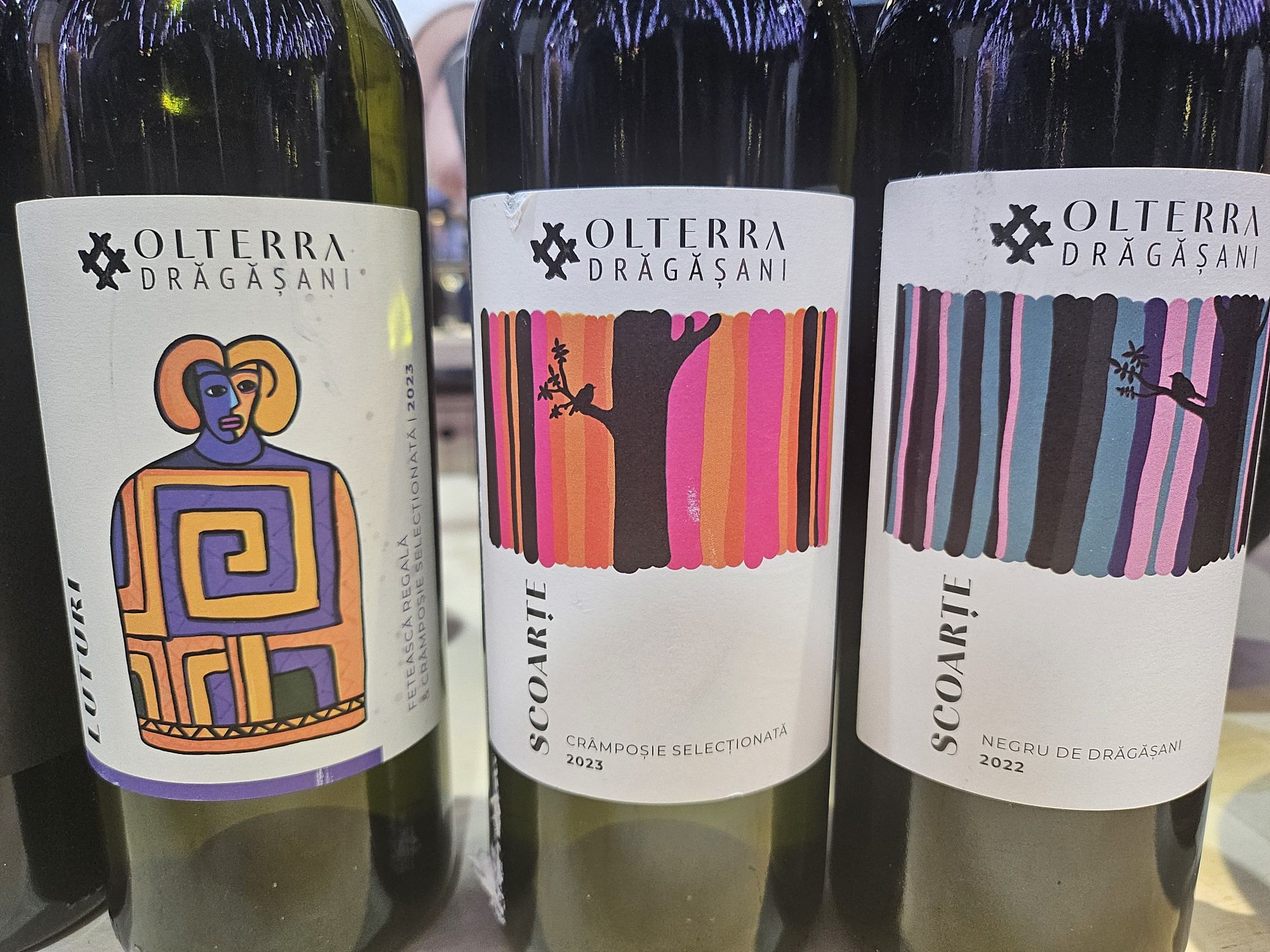 –Crama De Matei a făcut un ”takeover” asupra fostei Crame Meninni din Drăgășani, de la care remarcasem mai demult vinuri interesante, mai ales un Negru de Drăgășani. Acum acestea se poziționează ca o gamă nouă, Olterra, în noua formulă; am gustat o Crâmpoșie, o Fetească Regală, și un Negru de Drăgășani. Aș urmări cu interes acest conglomerat (Vintruvian) care încet-încet își construiește un portofoliu de crame din cele mai biune regiuni din țară;