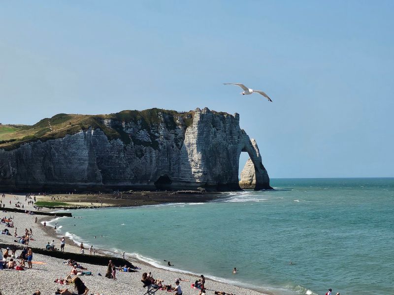 Falezele de la Etretat își păstrează sălbăticia și frumusețea aspră care au inspirat generații de scriitori și pictori. O bună parte din nuvelele lui Maupassant se desfășoară în această zonă. Azi e o destinație foarte la modă, cu mii de oameni zilnic care se lungesc pe pietrele rotunde ori urcă cărările abrupte, și trec pe lângă urmele de cazemate ale Zidului Atlanticului…