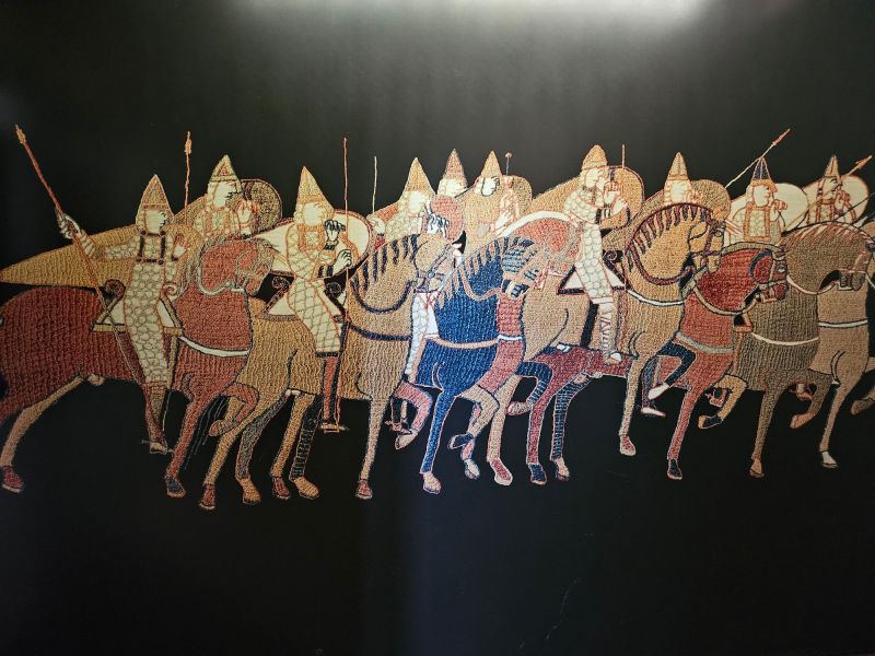 La Bayeux mi-am îndeplinit un vis din copilărie, de pe când eram elev și învățam din manualele de Istorie Universală despre cucerirea Angliei și bătălia de la Hastings, privind cu uimire la ilustrațiile ce înfățișau scene de pe tapiserie. Ei bine, tapiseria în sine e un document-unicat, o adevărată poveste (ori bandă desenată) de acum o mie de ani. Desenele sunt atât de vii, cu o mulțime de detalii ascunse, de la expresii ale fețelor soldaților, la animale, detalii de arme și armuri, inclusiv velele bărcilor ori harnașamentele cailor… În 57 de scene e cuprins unul din cele mai importante capitole ale istoriei Europei. Țineți cont că din această toamnă va fi expusă la British Museum timp de doi ani, cât timp se va renova muzeul din Bayeux.